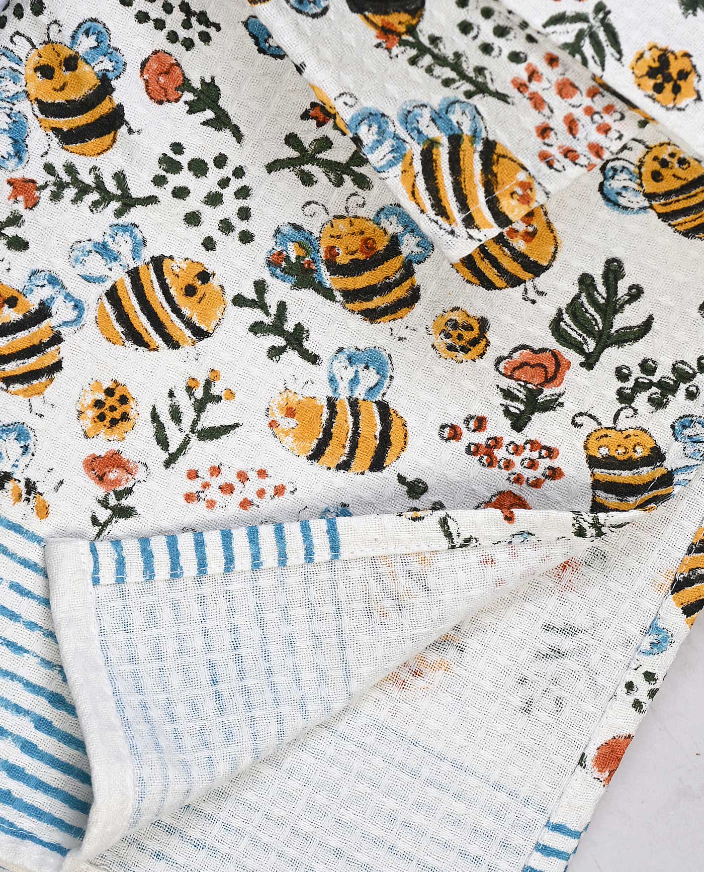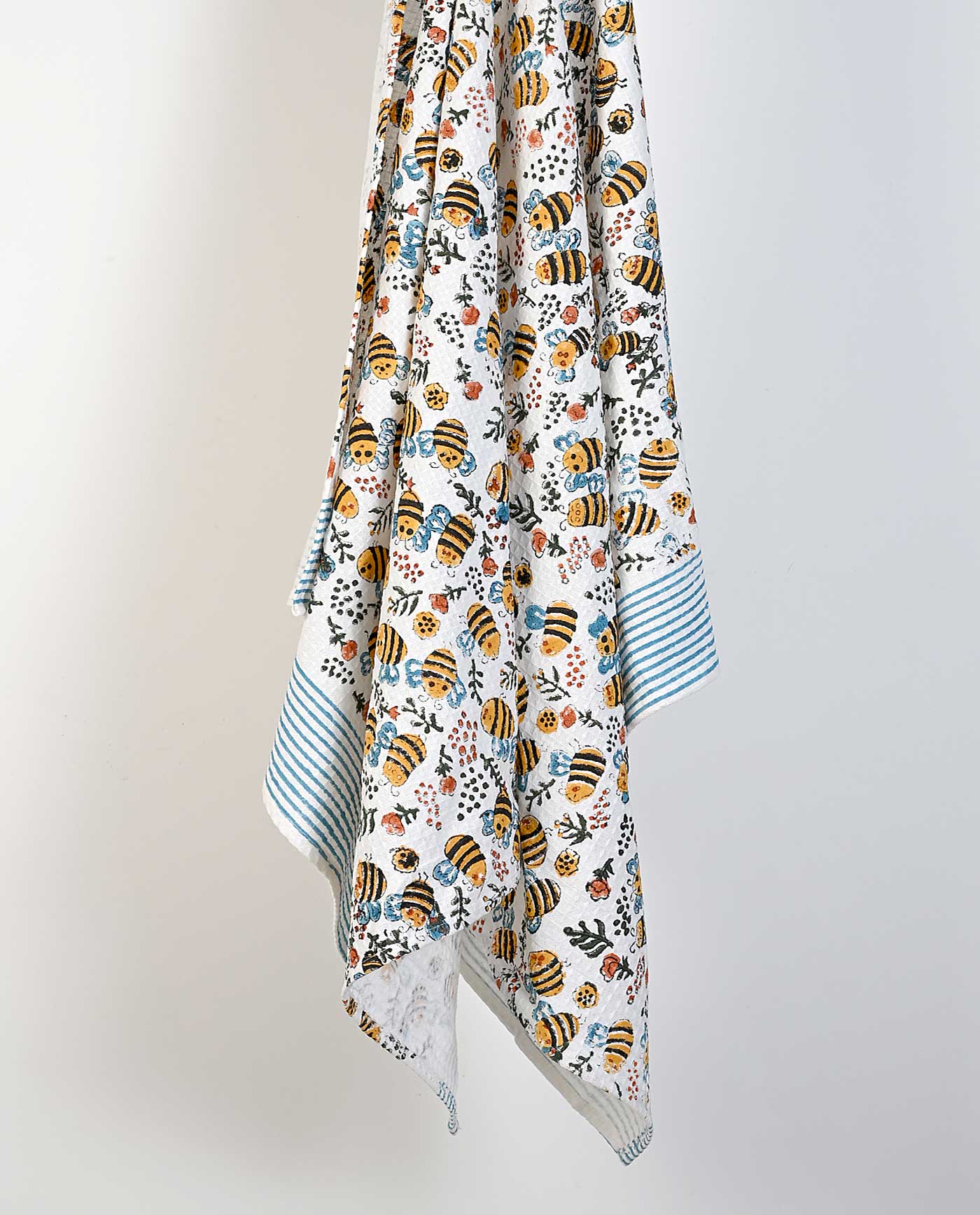 Wrap your little one in comfort with the BuzzBee Kids Towel. Made from soft waffle cotton, it’s lightweight, absorbent, quick-drying, and gentle on delicate skin – with a cheerful bee print kids will love.