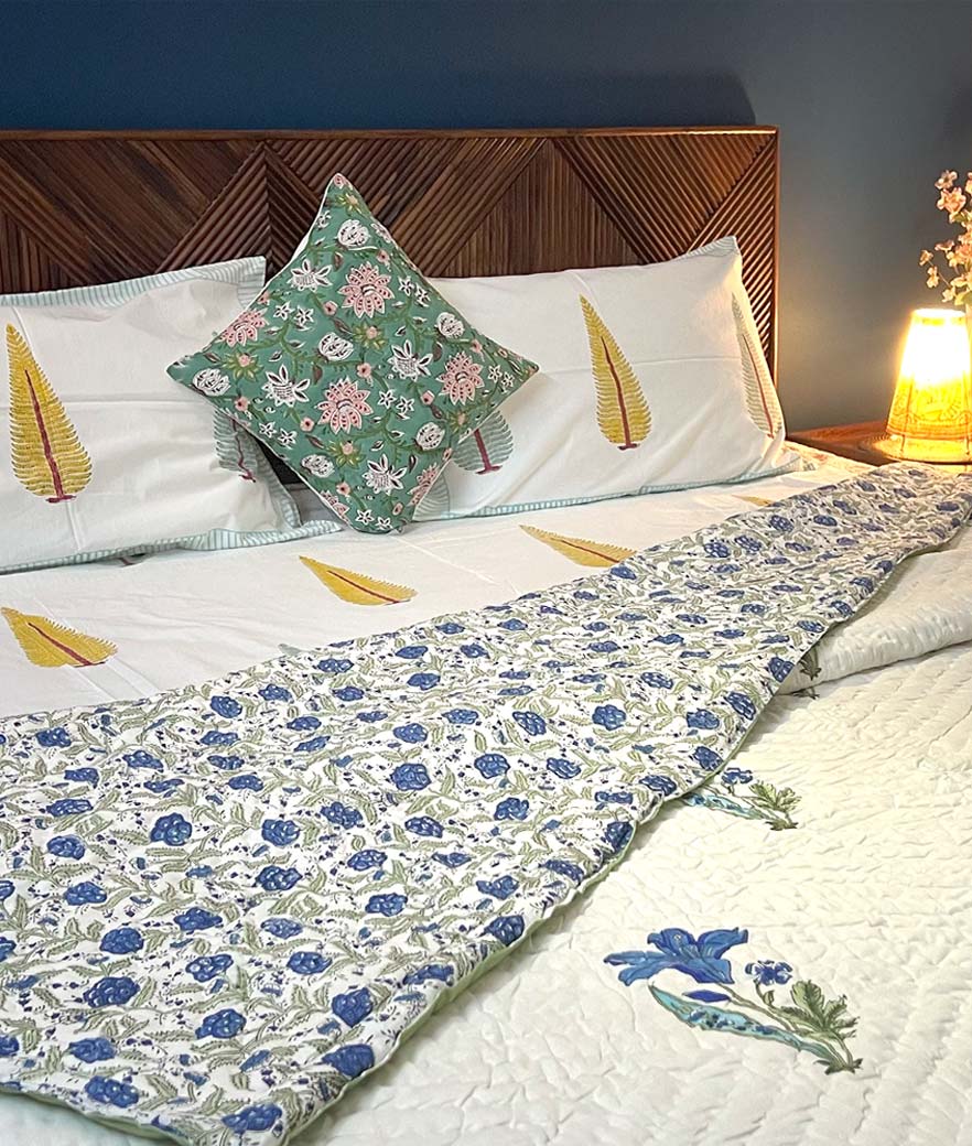Jaipuri green floral cover