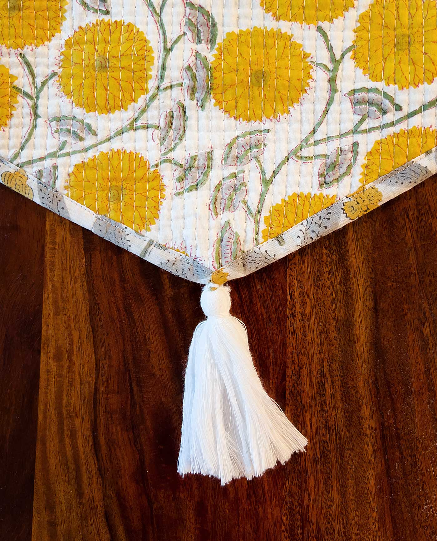 Inspired by the timeless beauty of Jaipur’s floral artistry, these table runners are hand block printed on a jute cotton base.