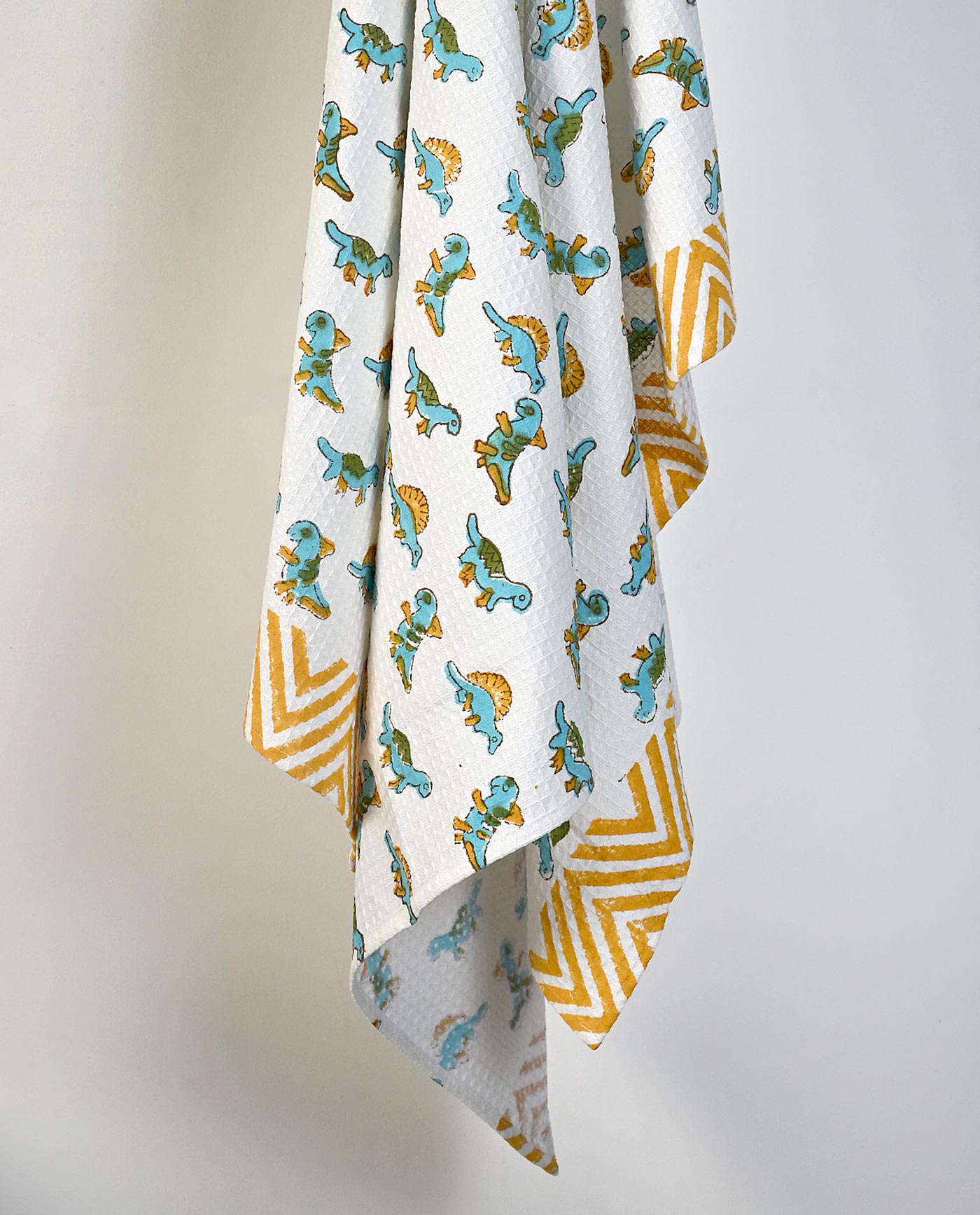 Wrap your little one in comfort with our Dino Print Kids Towel. Made from soft waffle cotton, this towel is lightweight, highly absorbent, and quick-drying – perfect for everyday use after bath time, swimming, or play. The breathable fabric feels gentle on delicate skin, while the fun dinosaur print adds a playful touch kids will love. Skin-friendly and easy to maintain, this towel makes bath time cozy and cheerful.